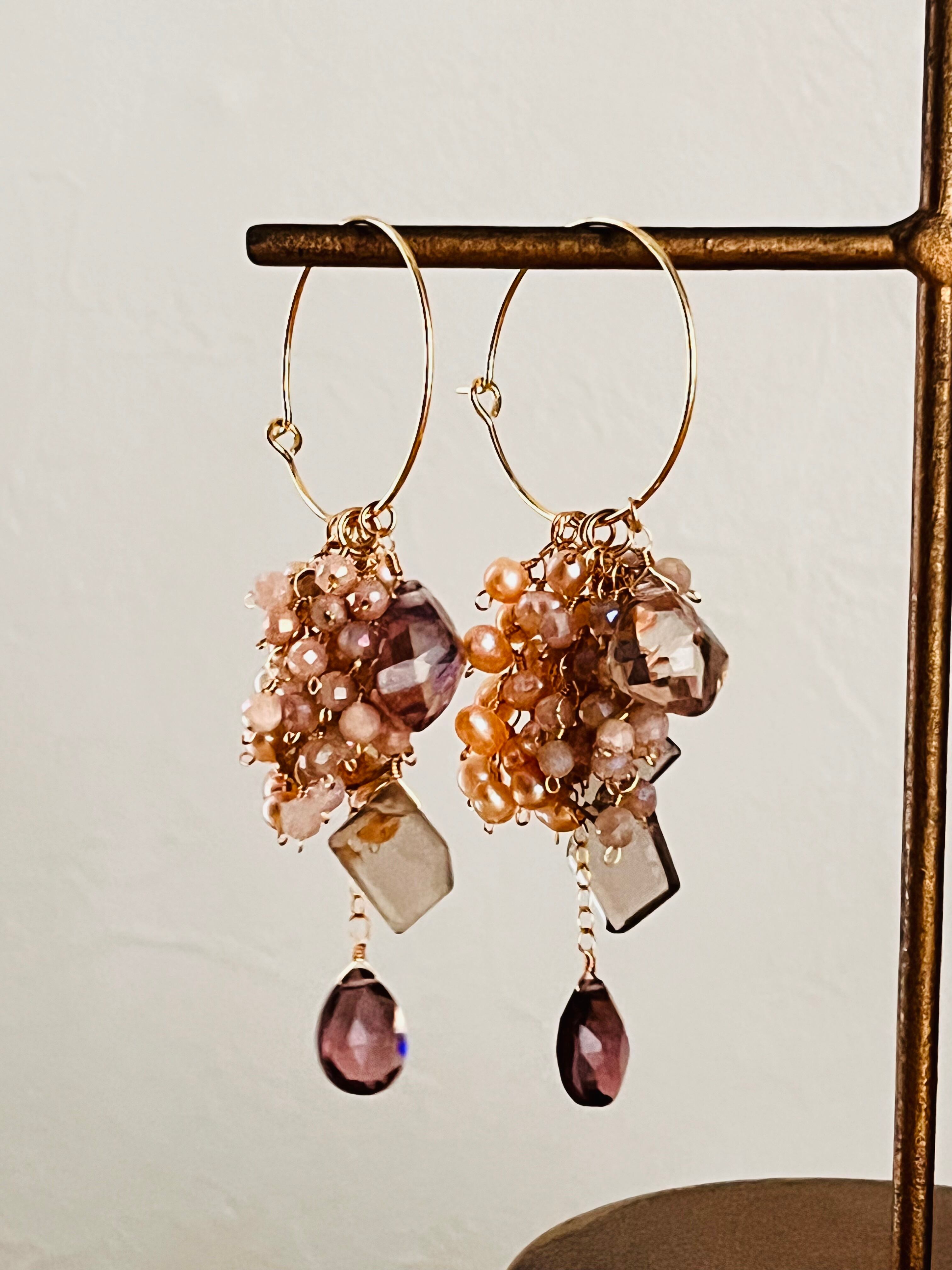 ◆石… アメトリン、コーティングムーンストーン、スモーキークォーツ、アフリカンアメジストカラークォーツ、サーモンピンクカラー淡水パール