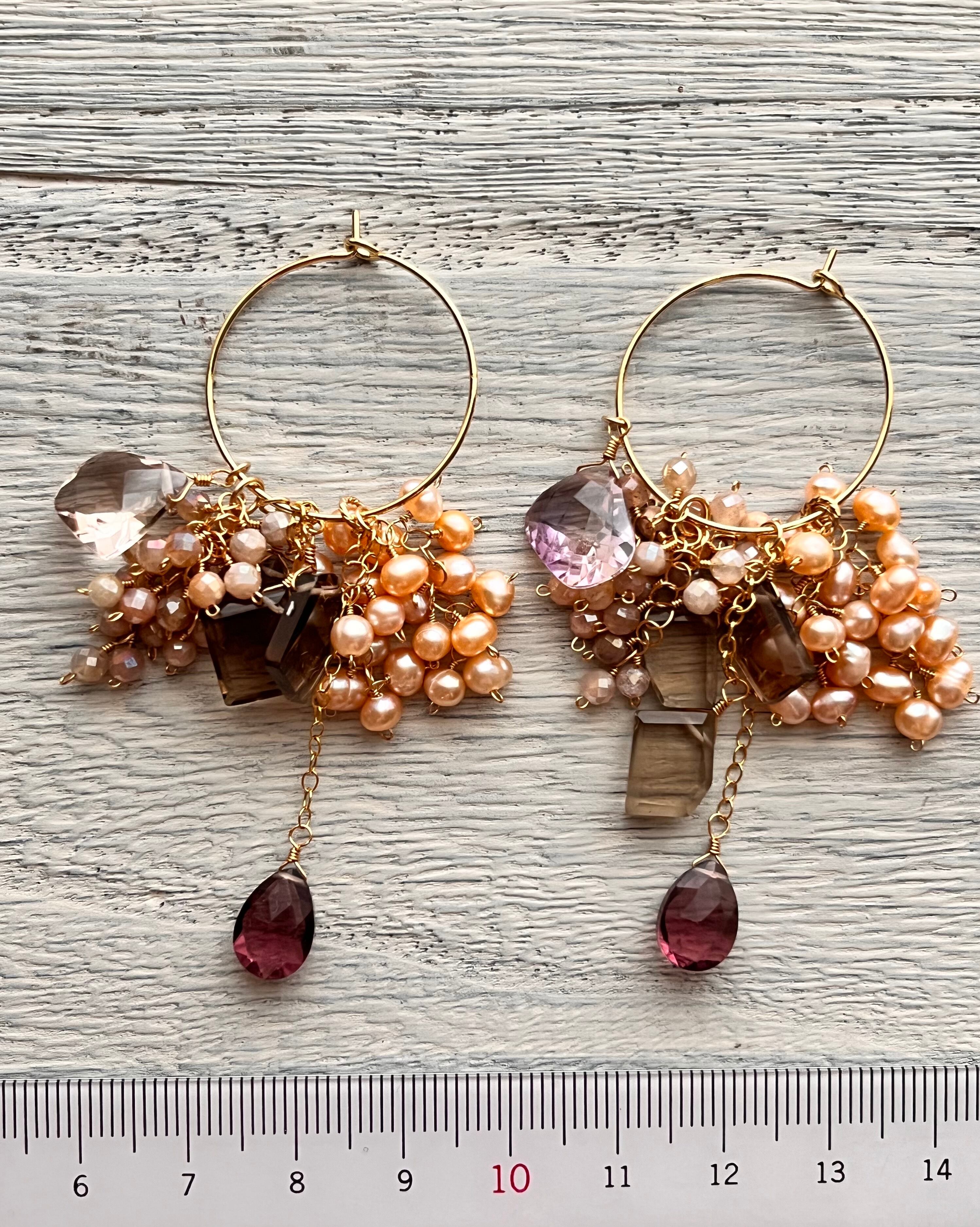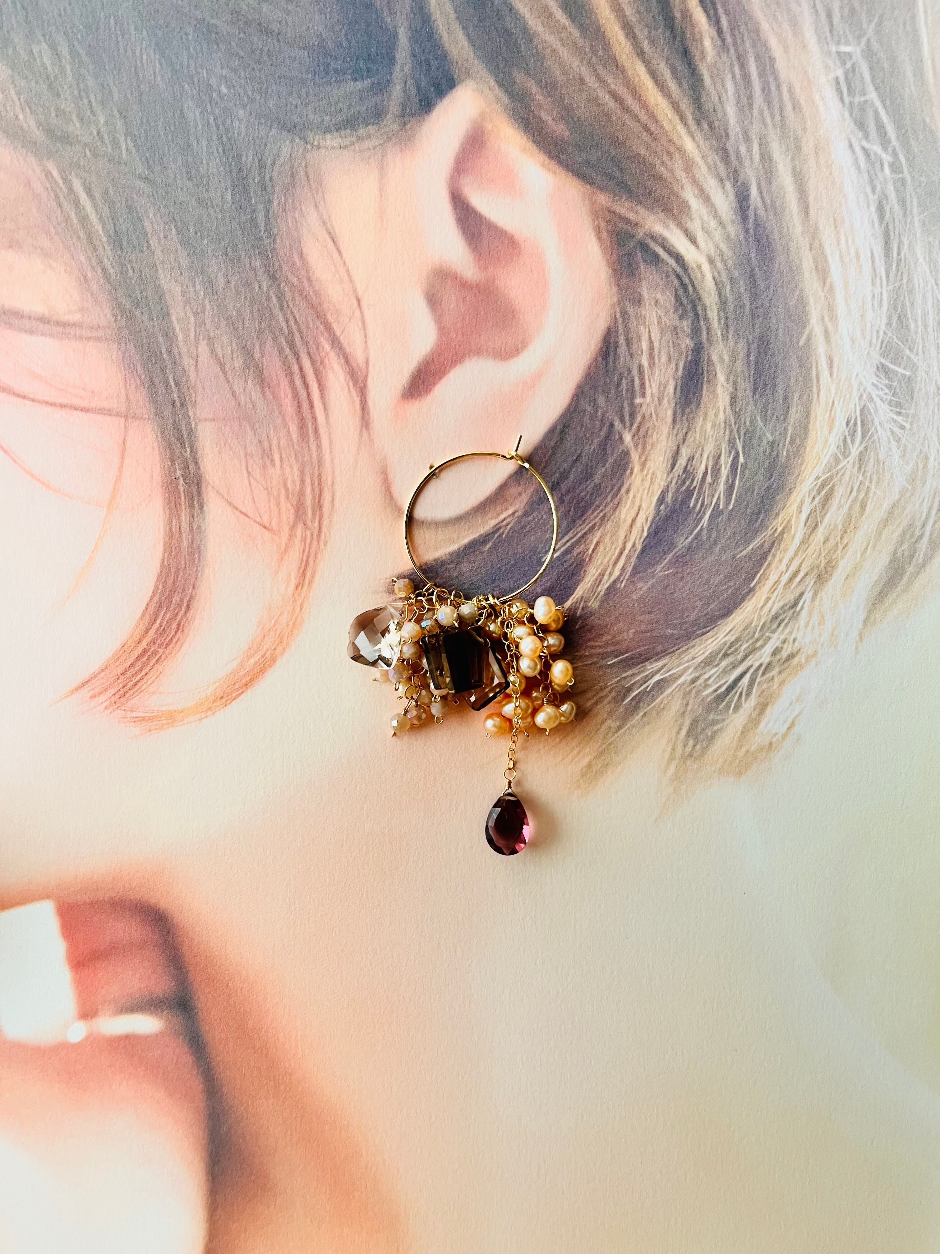 5種類のチャームがまるで花束のような、華やかなチャームのフープピアスです。