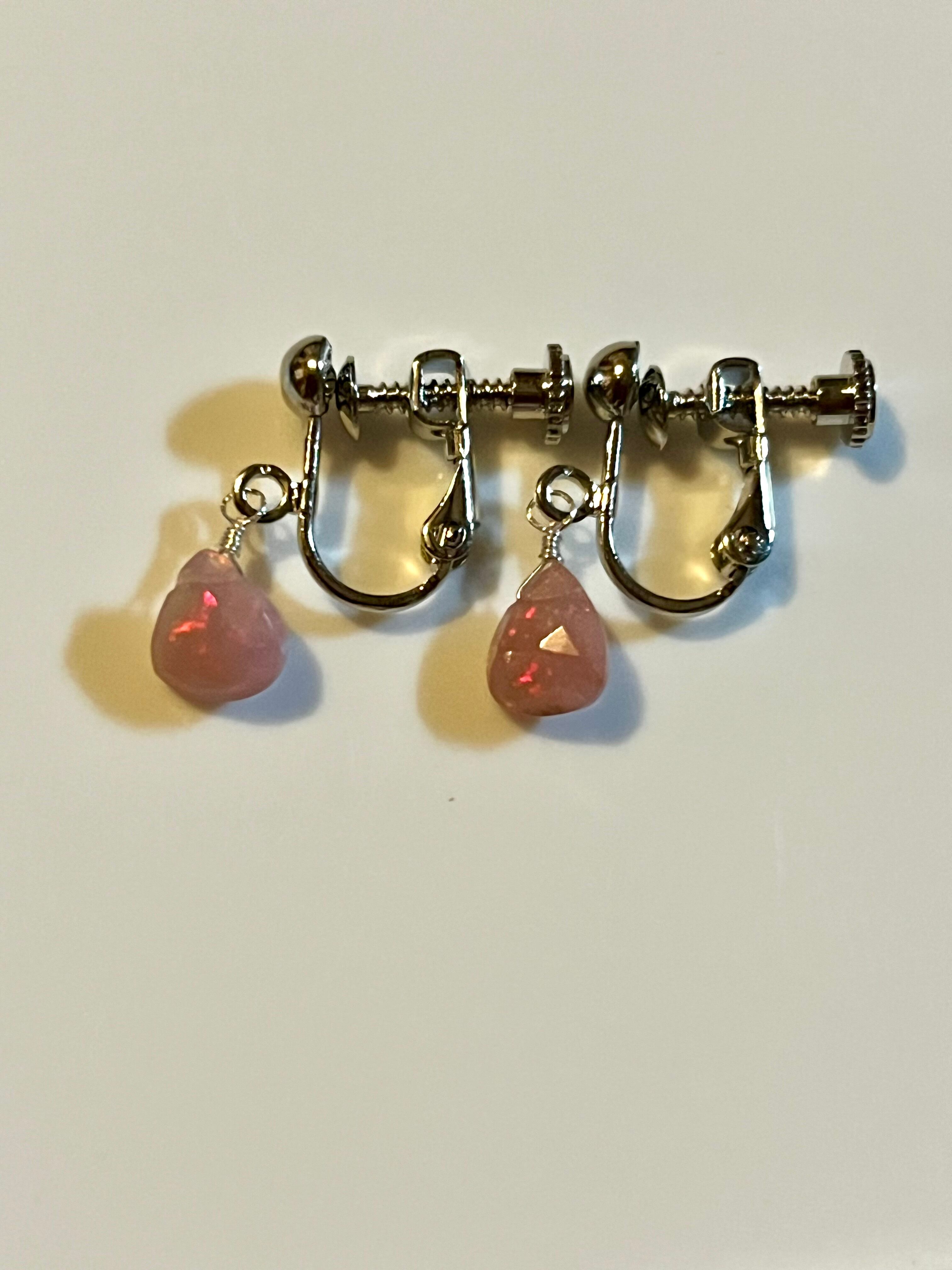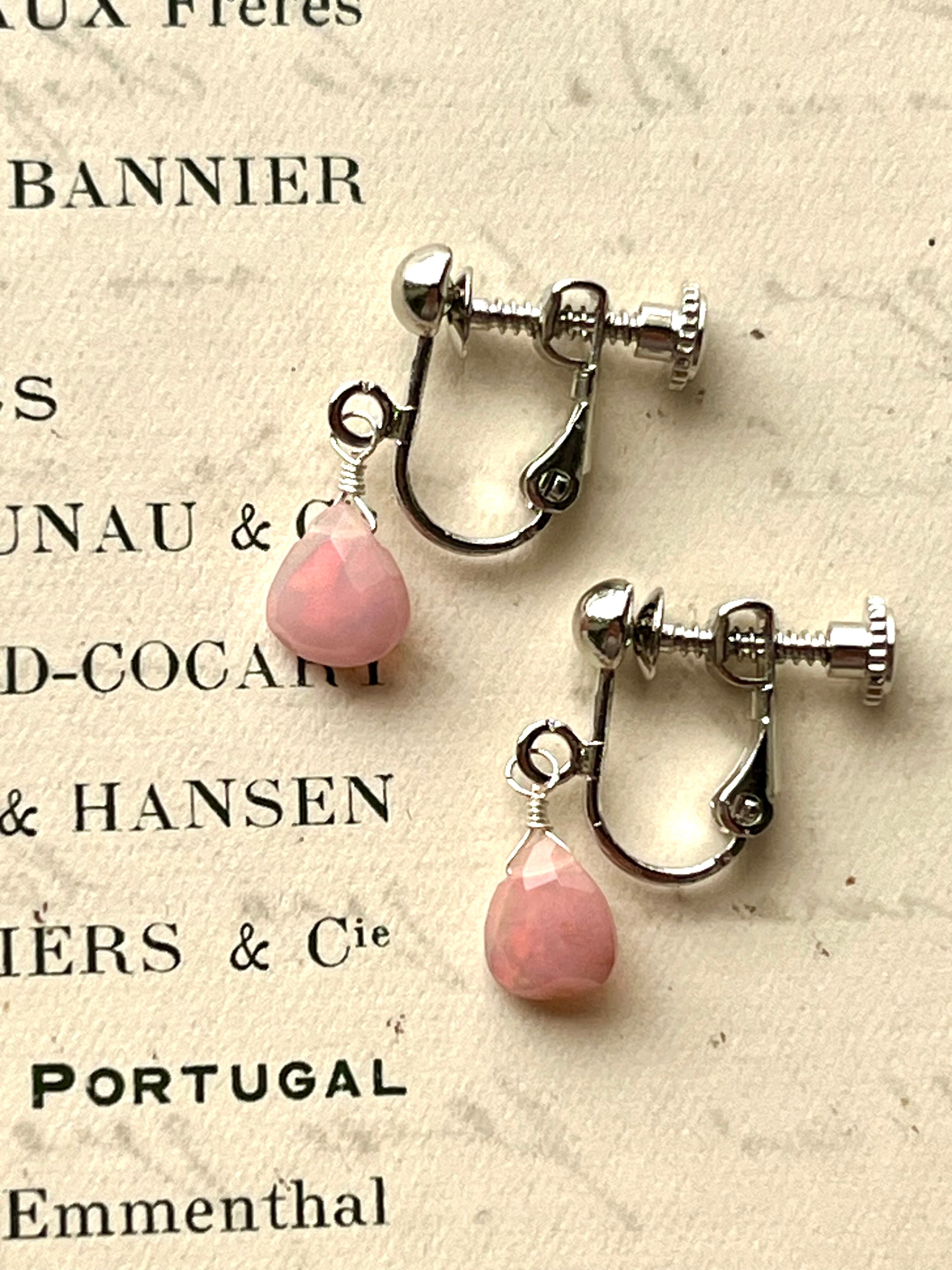 ぷっくりと厚みのある、マロンカットのピンクオパールの一粒イヤリングです。