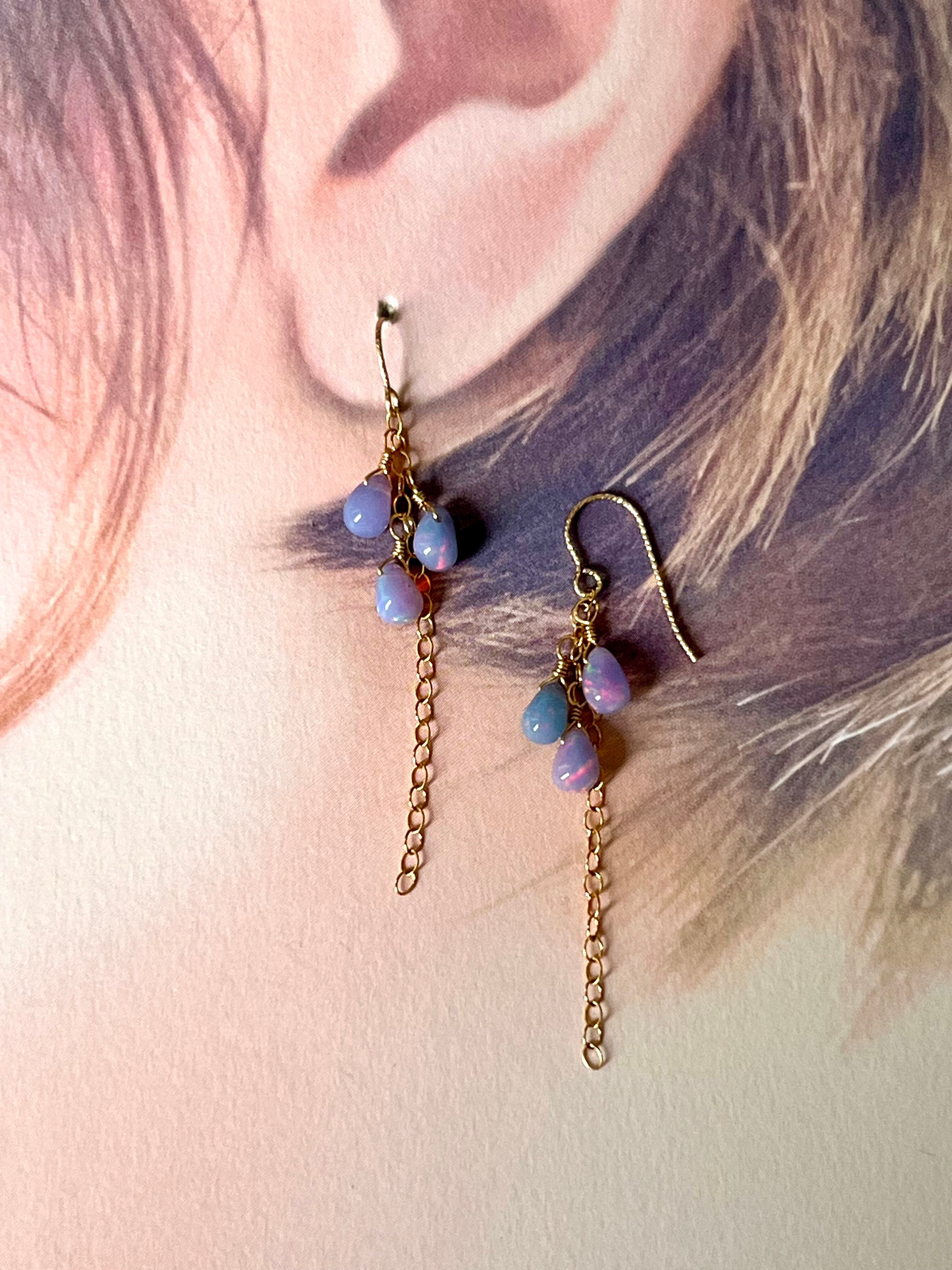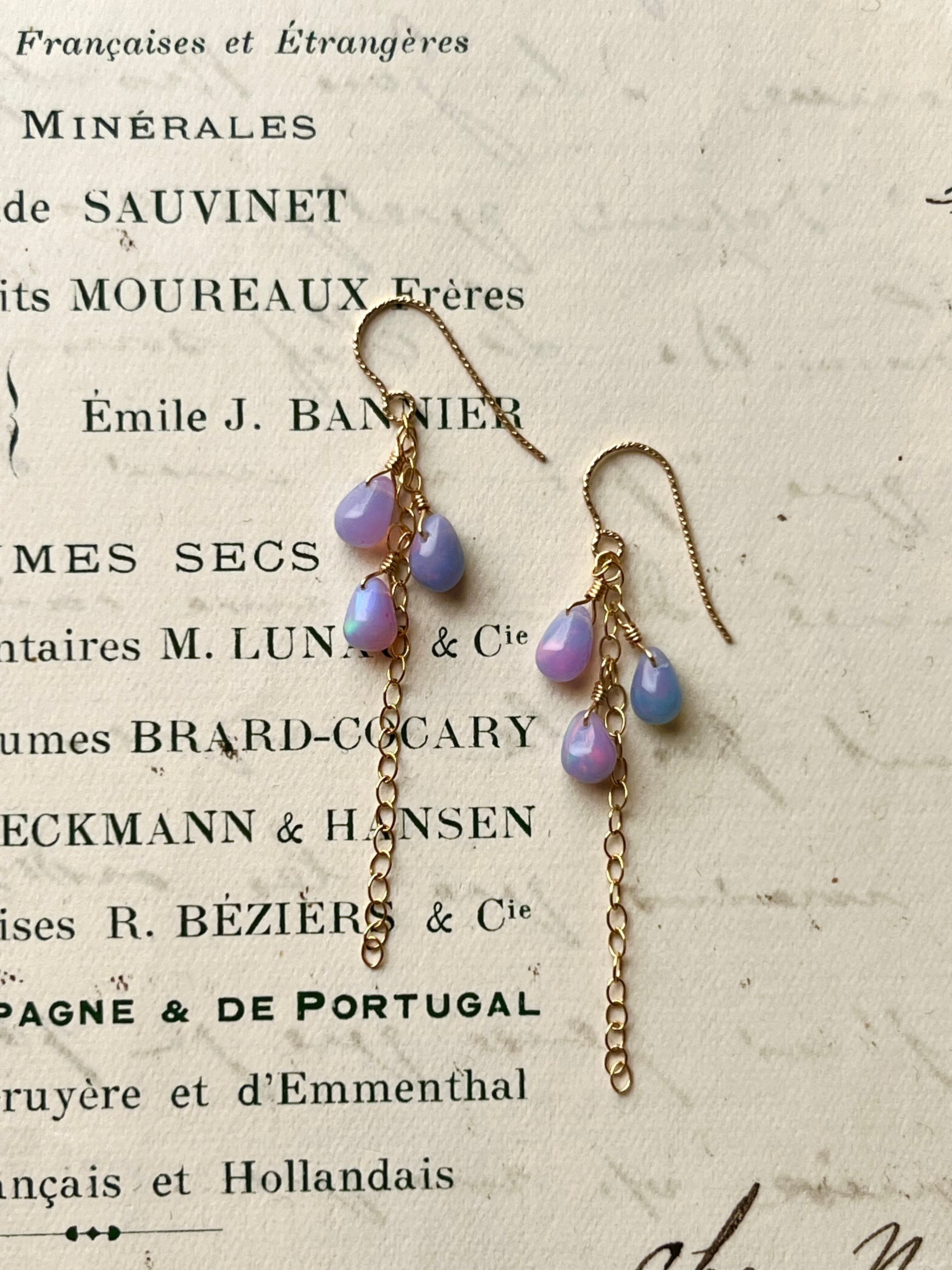 ぷるんとした見た目のティアドロップが可愛い、ゆめかわパステルカラーのブルーパープルオパールのピアスです。